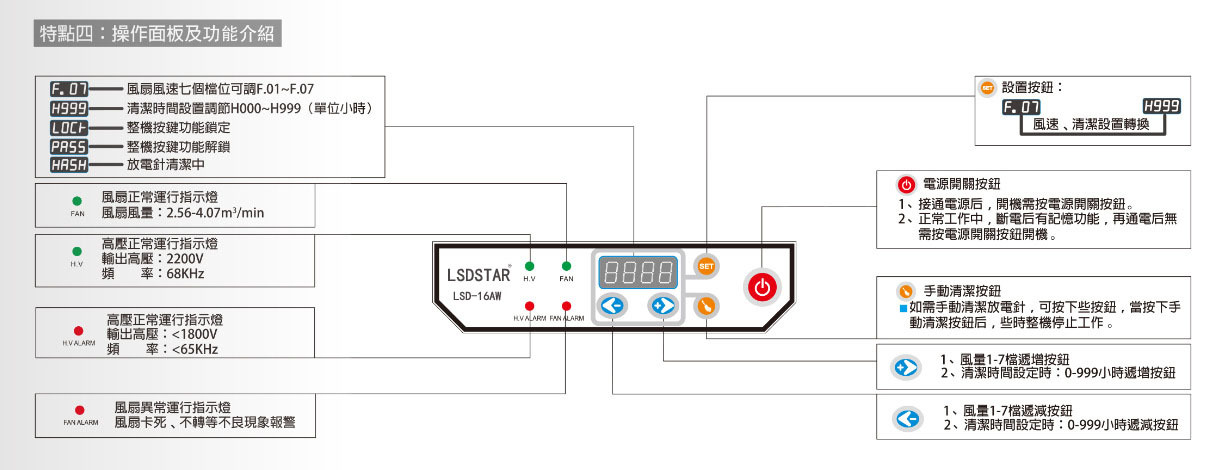 *特殊合金針:采用特殊合金放電針,長期使用不易磨損