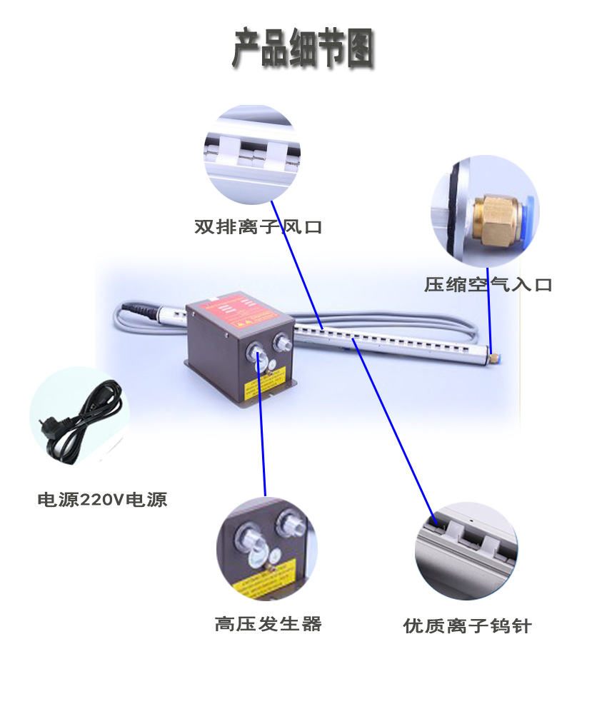 窗簾式的離子風可有效的隔離潔凈車間內外的空氣混流。需配高壓發生器使用